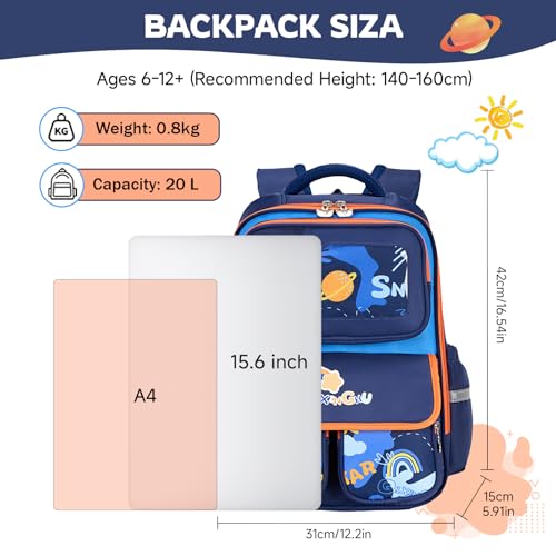 Amythe Schulrucksack Jungen Ergonomisch Schulranzen für 1. – 5. Klasse, Schultasche für jungs 6-12 Jahre mit Brustgurt Reflektor, Wasserdicht für Schule Reise