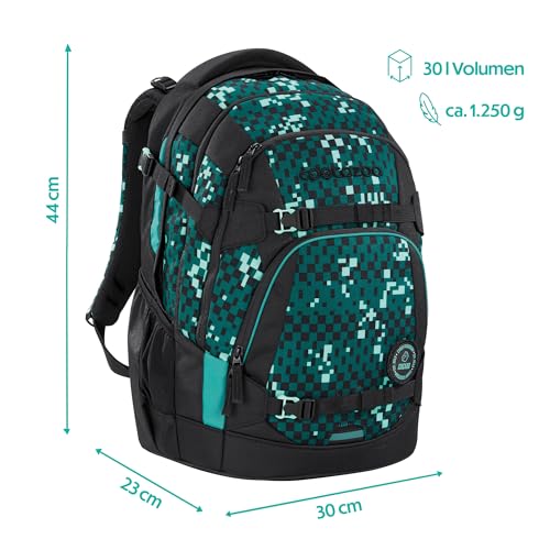coocazoo Schulrucksack Mate „Pixel Blox”, schwarz-grün, ergonomischer & anpassbarer Tornister, höhen- & größenverstellbar, mit Brustgurt & Hüftgurt, ab der 3. Klasse