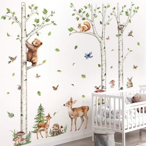 • decalmile wandsticker baum große birke und waldtiere sind ideal zum dekorieren von kinderzimmer mädchen, babyzimmer, wohnzimmer, spielzimmer usw.