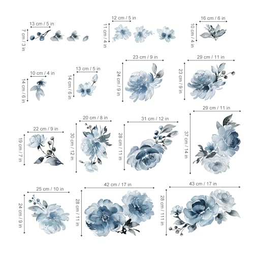 • decalmile wandtattoo blumen blau sind perfekt, um wohnzimmer, schlafzimmer, esszimmer, küche, wohnzimmer sofa zu dekorieren.