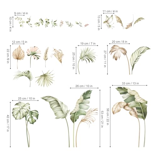 decalmile Wandtattoo Boho Palme Blätter Wandaufkleber Pflanzen Tropische Blätter Grüne Wandsticker Schlafzimmer Wohnzimmer Flur Wanddeko