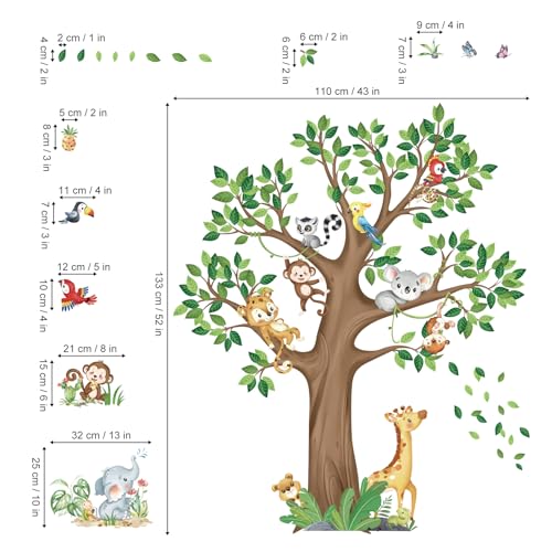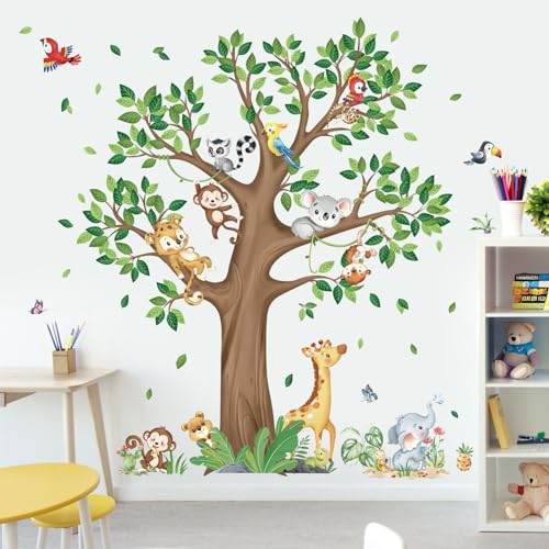 - decalmile wandtattoo dschungel tiere groß baum sind perfekt für die dekoration von kinderzimmern, kinderzimmern,spielzimmern, klassenzimmern und wohnräumen.