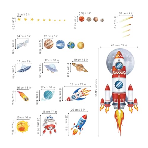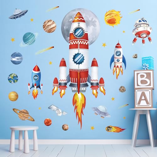 - decalmile Wandtattoo raketen weltraum sind ideal zum dekorieren von wohnzimmer, schlafzimmer, Jungenzimmer, kinderzimmer, spielzimmer, aktivitätsraum usw.