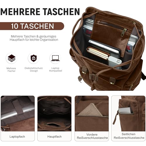 - Retro-Canvas-Rucksack: Dieser Rucksack besteht aus verschleißfestem Canvas-Material, das atmungsaktiv, wasserabweisend, kratzfest und reißfest ist. Das Futter ist glatt, weich und bequem. Das einzigartige Design der Pattentaschen mit Kordelzug ist nicht nur sicherer, sondern erleichtert auch den Zugriff auf Gegenstände. Hergestellt aus echtem Leder als Verzierung, ist es retro und modisch.