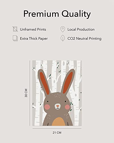 Hambient Poster Kinderzimmer – Bilder Babyzimmer Deko, Junge, Mädchen – Wandbilder, Kinderposter, Dekoration – 6er Bild Set (21 x 30 cm – Ohne Rahmen, Tiere Wilde Wald)