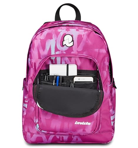 Invicta Jelek Schulranzen, Daypack, Tagesrucksack, Rucksack mit Trinkflaschenfach, Laptopfach, Extra Platz – 38 LT – Unisex, für Schule, Sport und Freizeit, Uni, rosa – Mädchen, Jungen
