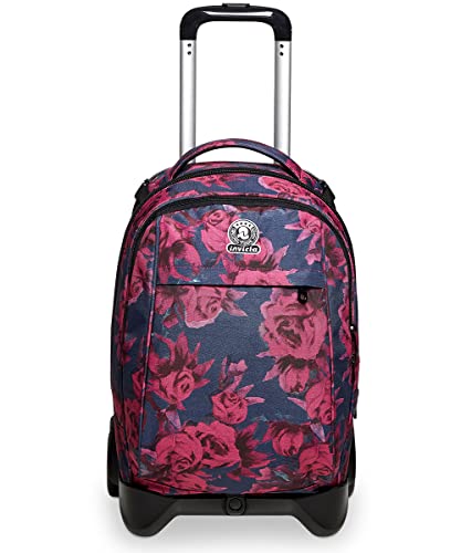 Invicta TROLLEY, Rucksack mit Trolleyfunktion, 3 in 1, Schulranzen mit Rollen, Abnehmbarer Rucksack, ab 1. Klasse, für Schule, Gymnasium, Reisen&Freizeit, Mädchen&Jungen, rosa, NEW TECH ROSES FANTASY