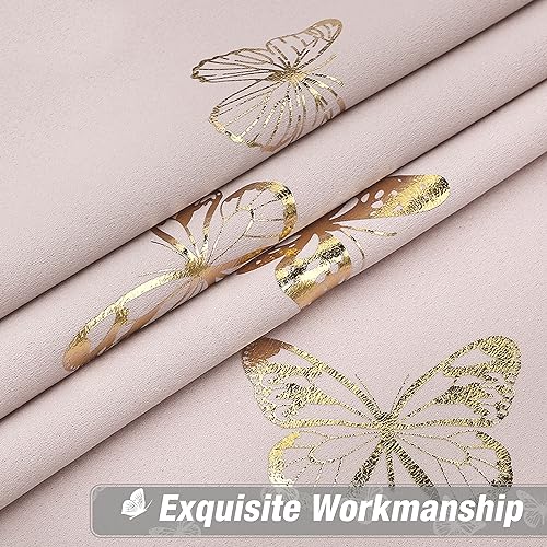 • Vorhänge mit Schmetterlings-Druck: 132 cm B x 213 cm L, 261 cm B x 213 cm L/Paar, 2 Paneele, hellrosa und goldfarbene Verdunkelungsvorhänge, Ösen oben. Es wird empfohlen, die 2- bis 3-fache Stangenbreite zu bestellen, um das richtige Aussehen und die Fülle zu erhalten