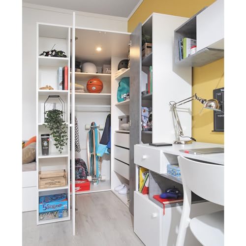• Gestalte dein Kinder- und Jugendzimmer sowohl praktisch als auch ästhetisch ansprechend mit Möbeln in den trendigen Farbkombinationen Weiß/Beton oder Weiß/Beton/Eiche.