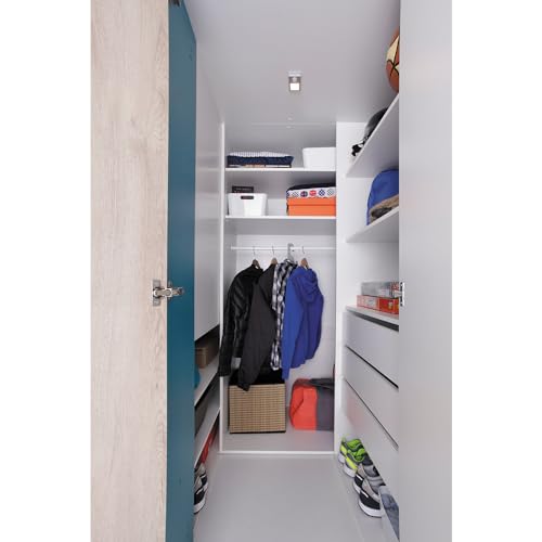 • MATERIAL – Front & Korpus: Qualitätsspanplatte, beschichtet; Farben/Dekore: weiß, blau, Eiche Nb.; Griffe: Metall, weiß; Kleiderstange: Metall; Beschläge und Scharniere: Metall