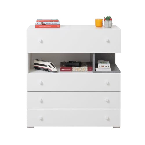 • Gestalte dein Kinder- und Jugendzimmer sowohl praktisch als auch ästhetisch ansprechend mit Möbeln in den trendigen Farbkombinationen Weiß/Beton oder Weiß/Beton/Eiche.