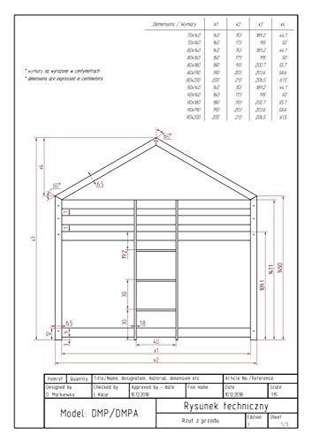• Mezzanine Hochbett aus Holz mit Barrieren 80 x 190 cm, Modell ZPA; Farbe: Braun