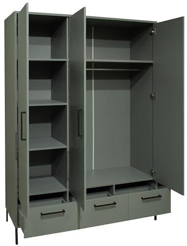 • Das 4-teilige Babyzimmer-Komplettset Ole in Pine Green Matt und Anthrazit bietet mit Babybett, Wickelkommode, Kleiderschrank und Umbauseiten eine vollständige Ausstattung für das Kinderzimmer.