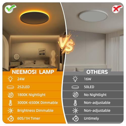 - 【Einfache Fernsteuerung & Timer-Funktion】Unsere hochmoderne LED deckenleuchte flach ist mit einer praktischen Fernbedienung ausgestattet. Stellen Sie die Farbtemperatur, die Helligkeit, den Nachtlichtmodus und die Timerfunktion mit nur einem Tastendruck nahtlos ein. Werten Sie Ihren Raum mit einer intuitiven Beleuchtungssteuerung auf, die Ihren Lebensstil bereichert