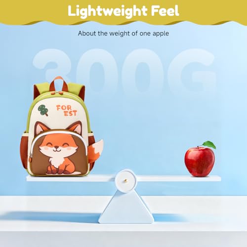 PROTAURI Rucksack Kinder für Jungen, Kindergartenrucksack mit Brustgurt Kita Rucksack mit Reflektierend Wasserabweisend und Leicht Karikatur Tier Reise Tasche für 2-6 Jahre, Fuchs-Design