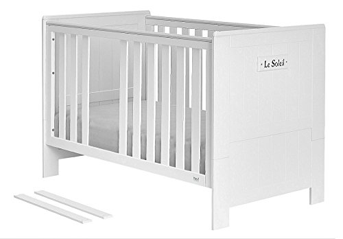 • Hochwertiges, sehr elegantes und einzigartiges Babyzimmer Set weiß aus MDF-Platte. Mit Schrank, Kommode, Wickelansatz und Kinderbett 140×70 – zum Juniorbett umbaubar – die Umbauseiten sind enthalten