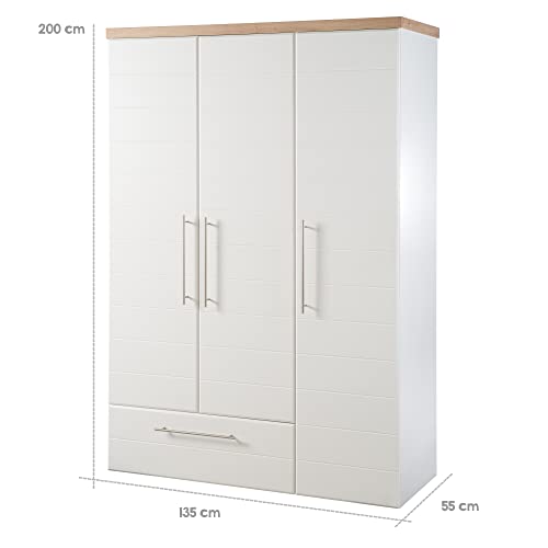 - Durch die eingebaute Soft-Close Technik lassen sich die Türen, sowie Schubladen sanft und leise schließen. Maße: HxBxT: 195 x 136 x 51,5 cm.