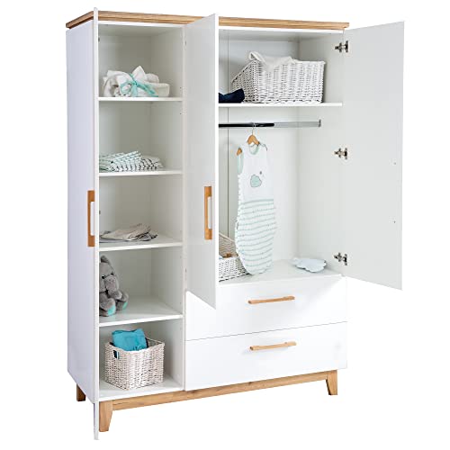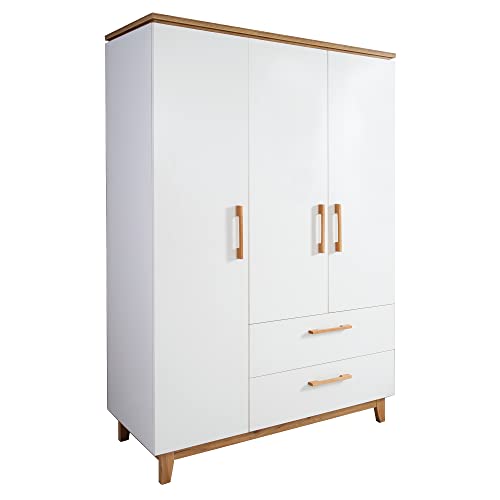 • DER ROBA KLEIDERSCHRANK 'FINN' bietet hinter seinen drei Türen mit hochwertigen Holzgriffen viel Stauraum im Kinder- oder Babyzimmer. (HxBxT): 200 x 134,5 cm x 55 cm.