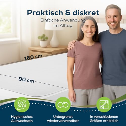 • Bis 95 Grad waschbare Inkontinenz Betteinlage u.a. für Erwachsene und Senioren – Trockner geeignet