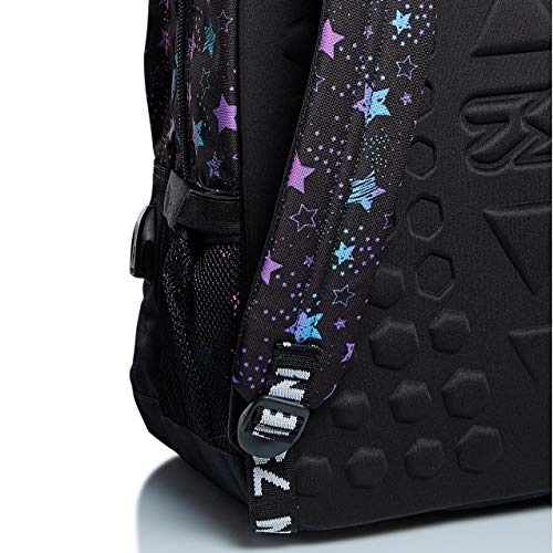 Seven Rucksack, für Schule, Sport und Freizeit, Geräumige Schultasche für Teenager, Mädchen und Jungen, mit Trinkflaschenfach, schwarz, praktisch mit USB-Anschluss, BROADER Dance Party