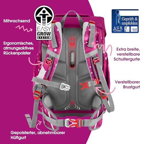 • EASY GROW SYSTEM – Das einzigartige System ermöglicht eine optimale Passform während der gesamten Schulzeit: Mit dem einfachen Verstellmechanismus lässt sich die Rückenlänge des Rucksacks jederzeit auf die aktuelle Größe Deines Kindes anpassen