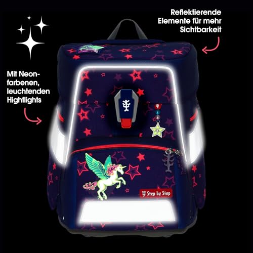 Step by Step Schulranzen-Set Space Shine „Pegasus Night Nuala“ 5-teilig, ergonomischer Tornister mit Reflektoren, höhenverstellbar mit Hüftgurt, Grundschule, 1. Klasse, 20L, lila-rosa