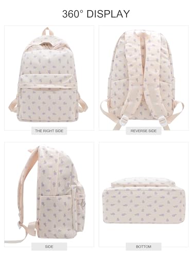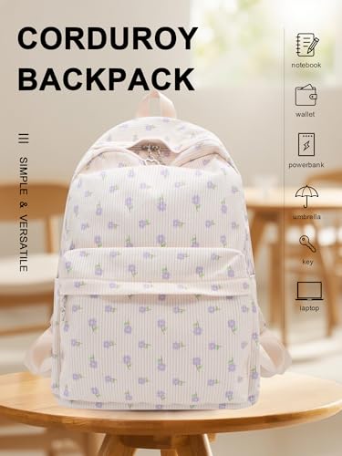 TeeYee Damen Cord Rucksack Backpack Schule Blumig Lässig Leichter Daypack Casual Mädchen Rucksack 316purpurblume