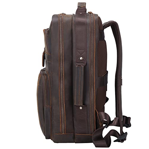 TIDING 43,9 cm (17,3 Zoll) Vintage-Leder-Laptop-Rucksack für Herren, mehrere Taschen, lässiger Tagesrucksack, Reiserucksack