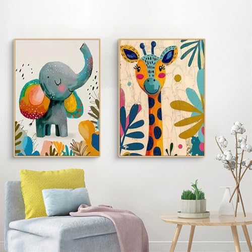 - Tauchen Sie ein in die faszinierende Welt der Tiere mit diesen zauberhaften, farbenfrohen Wandbildern, die ideal für Kinderzimmer und Spielräume geeignet sind. Jedes Bild zeigt charmante Darstellungen von Elefanten, Löwen und Giraffen, die durch ihre kindliche Ausführung und die leuchtenden Farben das Herz jedes Kindes erobern werden.