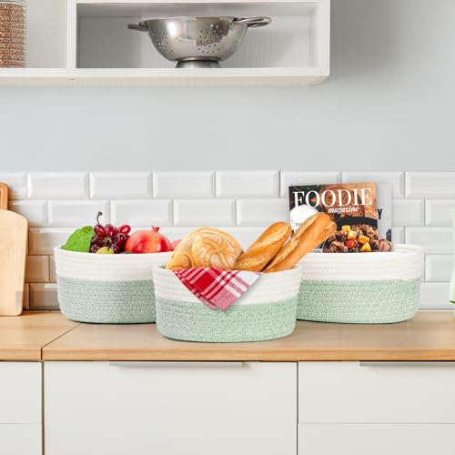 Vikcvcsc 5er Set Aufbewahrungskorb Wickeltisch Organizer Körbchen, Korb Geflochten aus Baumwolle, Körbe Aufbewahrung mit Griff, Storage Basket, Badezimmer Organizer, Babyzimmer Deko, Weiß & Grün