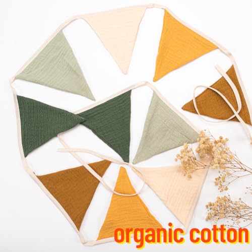 Wimpelkette Kinderzimmer,Musselin Baumwolle Stoff Wimpelkette,Girlande Kinderzimmer Deko zum Aufhängen, Hausbett Deko Mädchen & Jungen,Wanddeko Geschenk,Babyzimmer Dekoration (1PCS Morandi Grün)