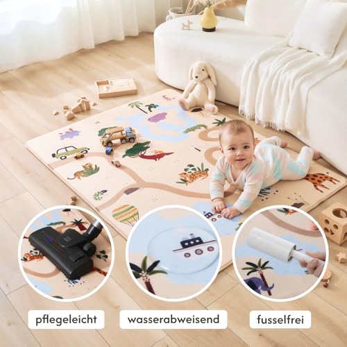 - Pflegeleicht und hygenisch – diese matte für Kinder kann in Sekundenschnelle mit einem Staubsauger oder einem feuchten Tuch und Seife gereinigt werden. Der flauschige Babyteppich ist bei 30°C handwaschbar und für die Fußbodenheizung geeignet. DESIGNED IN GERMANY