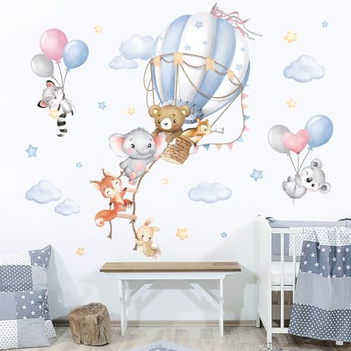 wondever Wandtattoo Heißluftballon Tiere Groß Wandaufkleber Ballon Safari Bär Elefant Fuchs Wandsticker Wanddeko für Kinderzimmer Schlafzimmer Babyzimmer