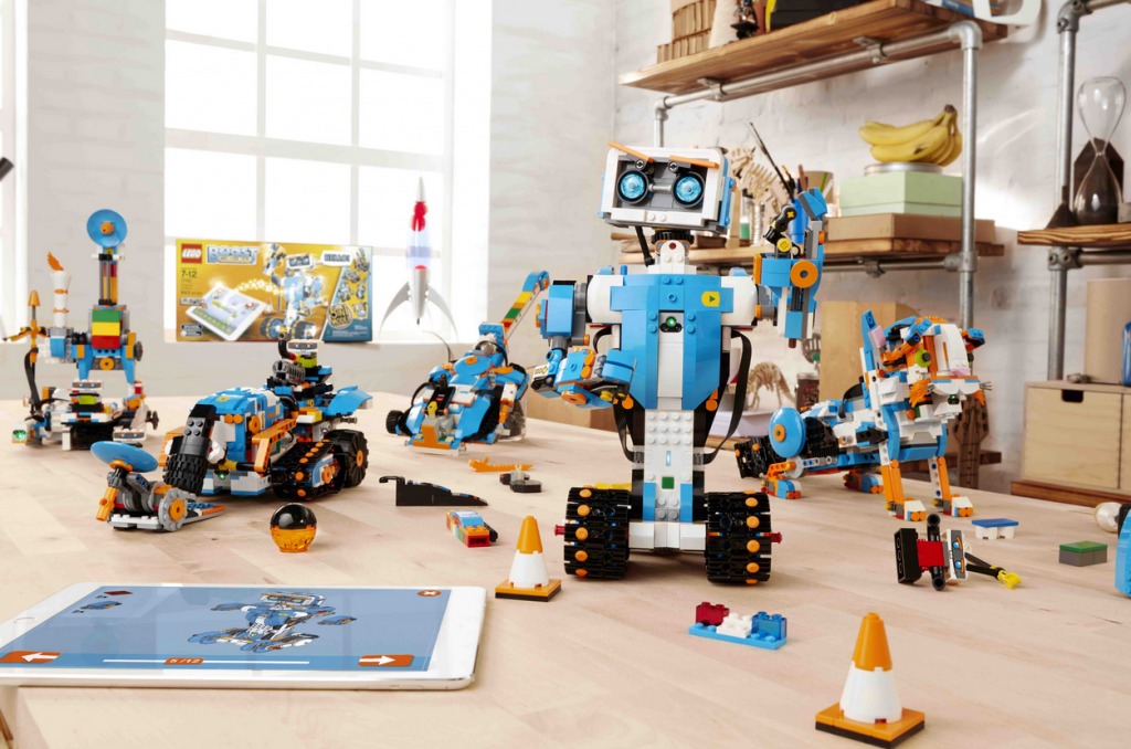 Ab jetzt wird das Kinderzimmer noch lebendiger. Gerade saust ein Roboter durchs Kinderzimmer und hat da nicht irgendwo eine Katze miaut? Die Zeichen sind eindeutig: Hier ist LEGO BOOST im Spiel. Denn mit dem neuen programmierbaren Roboticset ist es ganz einfach über eine App möglich, die kreativen LEGO Modelle von Baumeistern ab sieben Jahren zum Leben zu erwecken. Ganz nebenbei lernen Kinder darüber hinaus, wie einfach Programmieren sein kann. LEGO BOOST enthält Bauanleitungen für fünf Modelle: Vernie, den Roboter, Frankie, die Katze, die Gitarre 4000, das Fahrzeug Mehrzweck-Rover 4 (M.T.R.4) sowie eine automatische Fertigungslinie.
